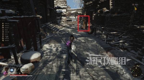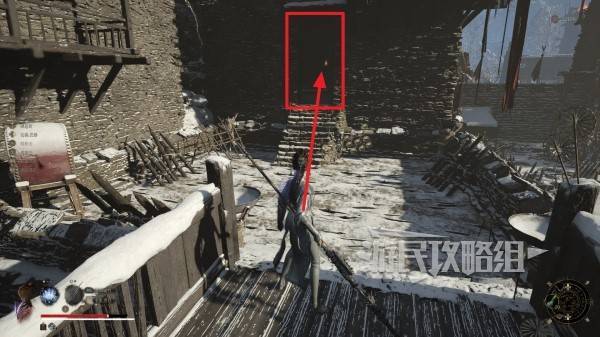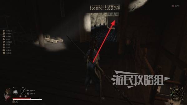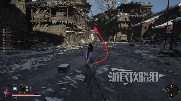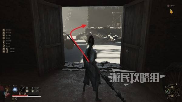 从房间另一侧小门离开房子,参考下图,进入前方的建筑。