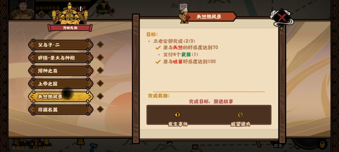 在这个剧本唐朝有一个叫碎镜的资源。如果开局拒绝直接失败结局速通了。