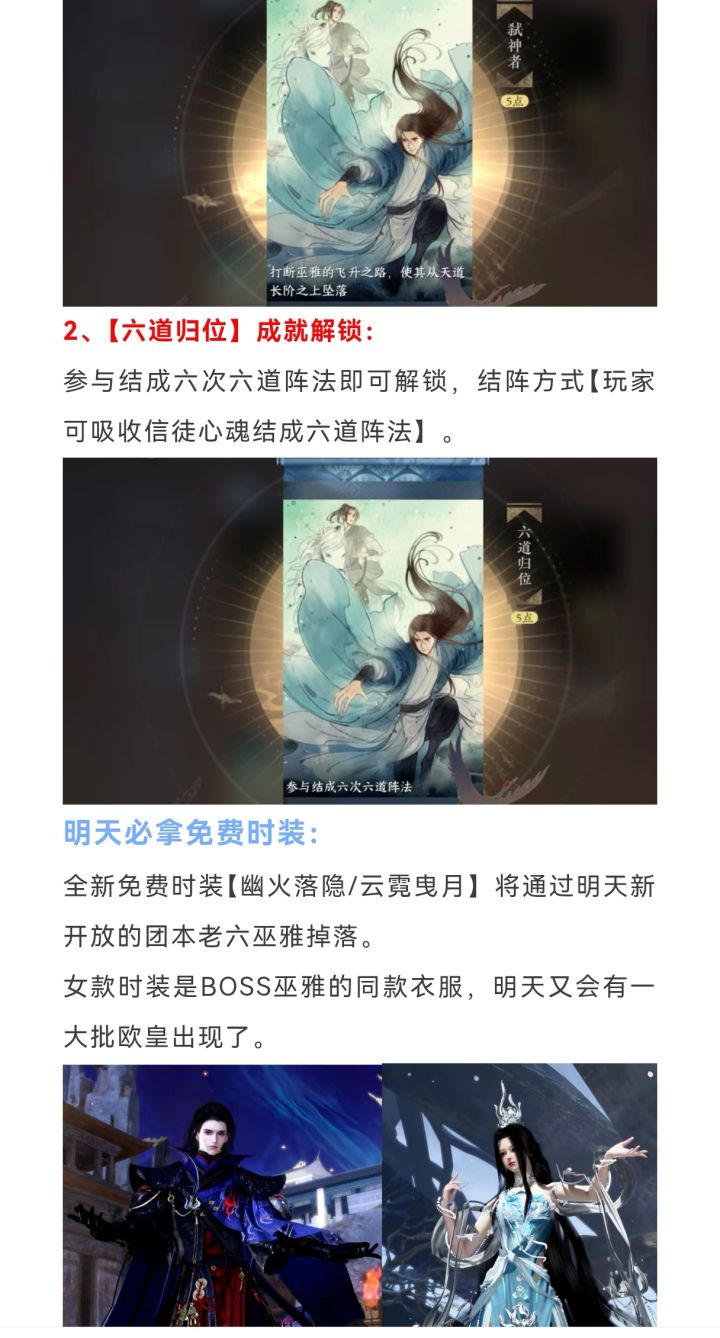 逆水寒手游明天必拿免费新时装,2个新成就解锁,明天巫雅通关攻略,新地图区域解锁,弑神者成就,六道归位成就!