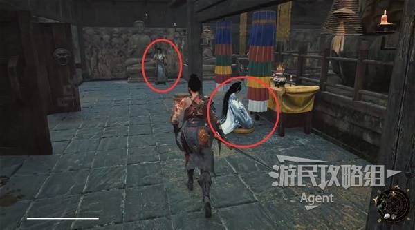 1、游戏一开始在普元寺一楼,和弹琵琶的瑜夏对话。她要你去蜀王祠打探消息,回来告诉她。
