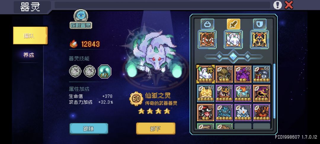 武器器灵方面只推荐狐狸。其他的提升实在是太小了