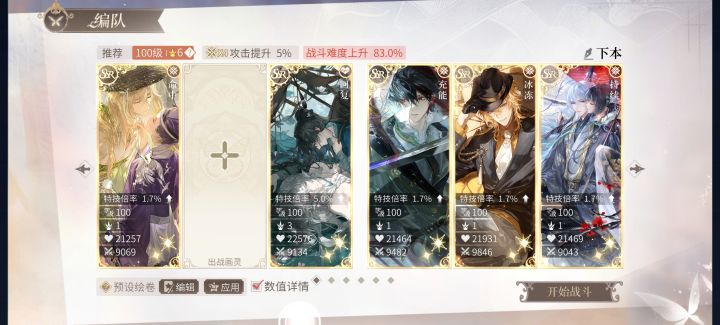后面都是凑队的,我建议有条件一定带 坠时!(附加真实伤害很重要,毕竟这一关限制回合数输出很重要!)其他2张我用来凑队伍加成——攻击加成5%