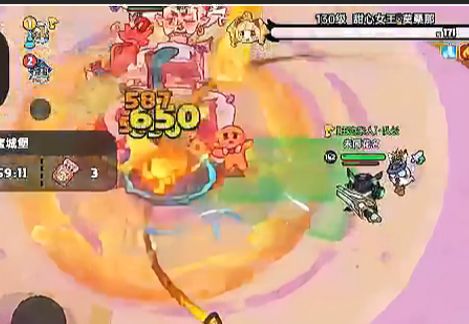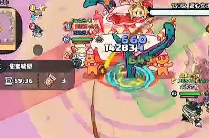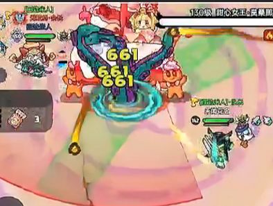 5.甜心女王张开手臂召唤大型糖果人对玩家进行直接攻击,同时三阶段扇形会覆盖整个目标区域同时攻速加快。