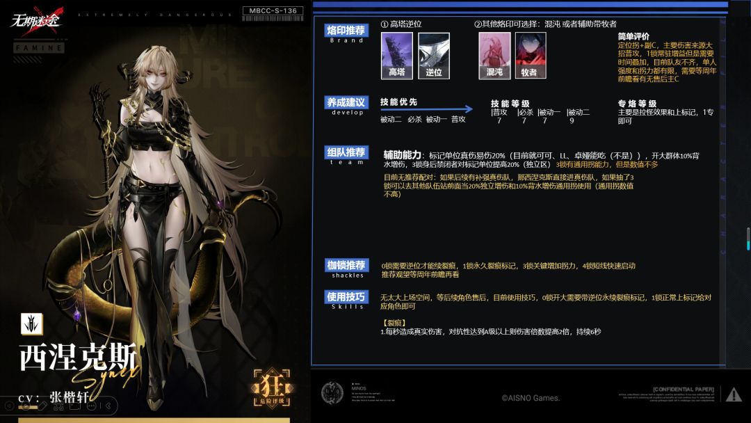 很多小伙伴想知道”黄毛“西涅克斯怎么使用,强度如何,刚好这里有一碗现成的攻略,就让牢鲨来给大家咀嚼一下西涅克斯的机制和数值,希望能帮助大家,当然我尽量做到了严谨,如有错误欢迎指出谢谢大家捧场