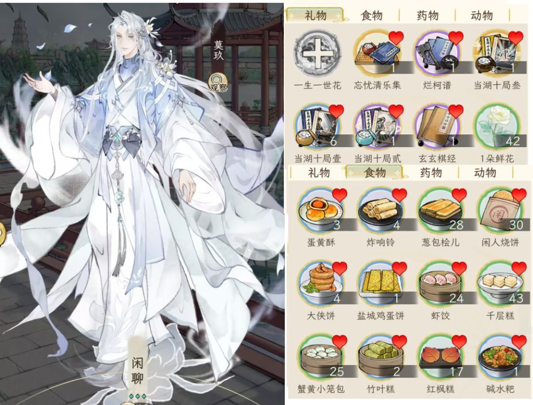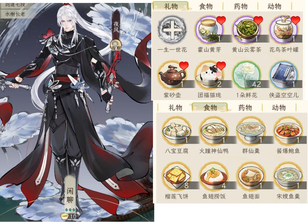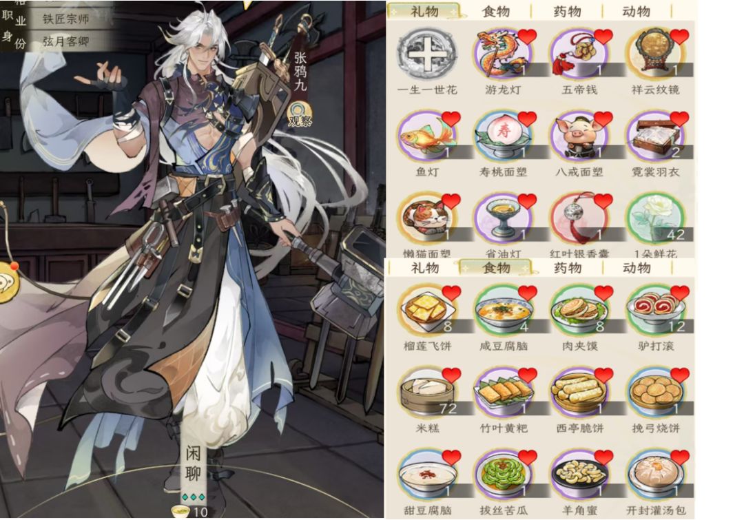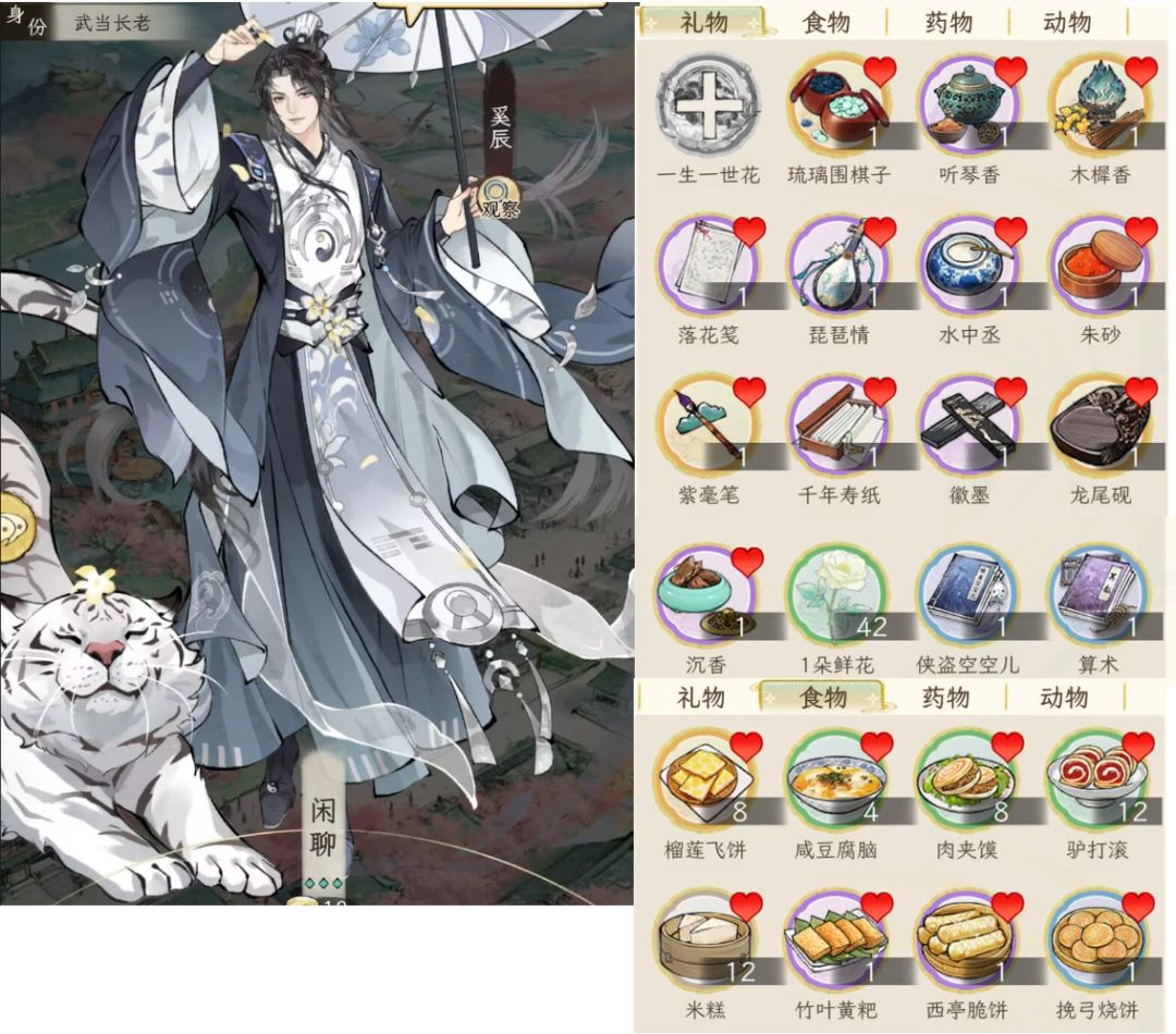说在前头,考虑到礼品获取的难易度,所以这里用于测试的物品都是可以直接从“商城--市集--赠礼”中买到的,除了这些肯定还有其他,例如团福猫珑、仙肴食物,但是这些获取渠道不稳定,所以不考虑,仅供参考。