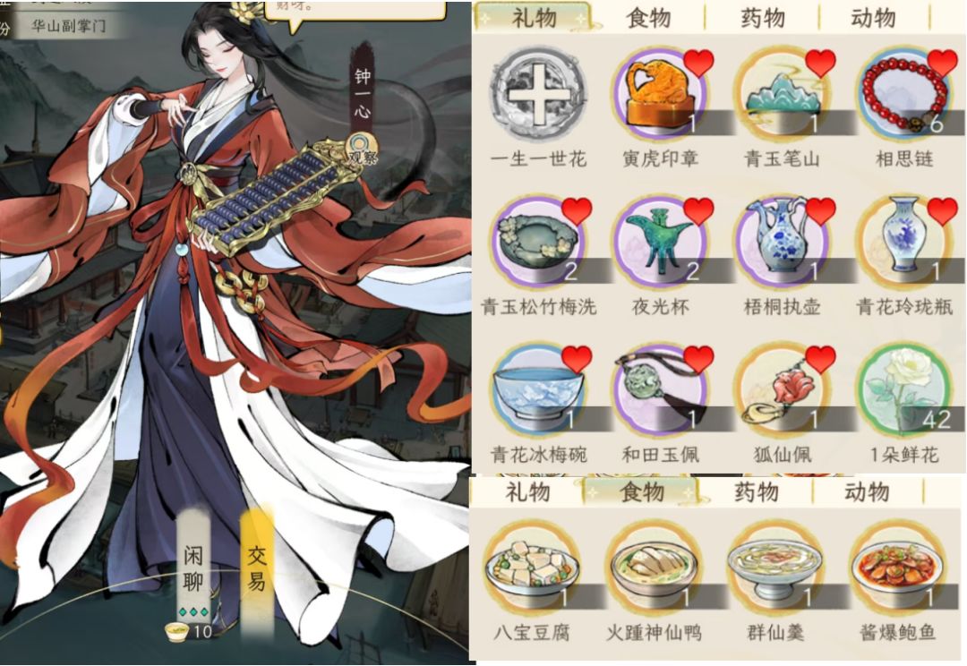 华夏千秋——送礼,NPC喜好【绝代,女性篇】(更新小龙女云梦)