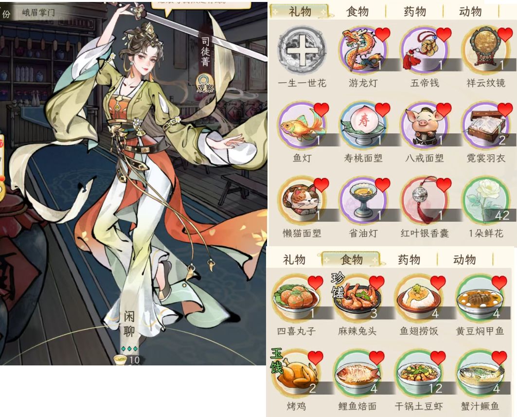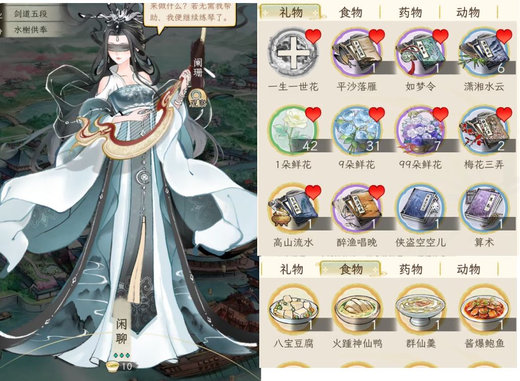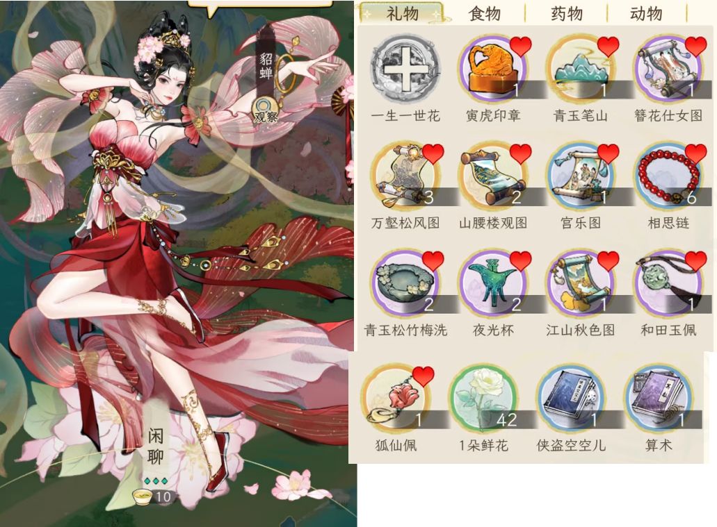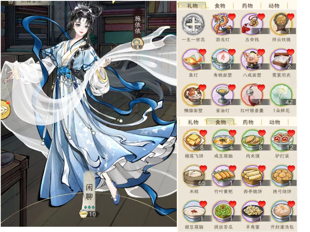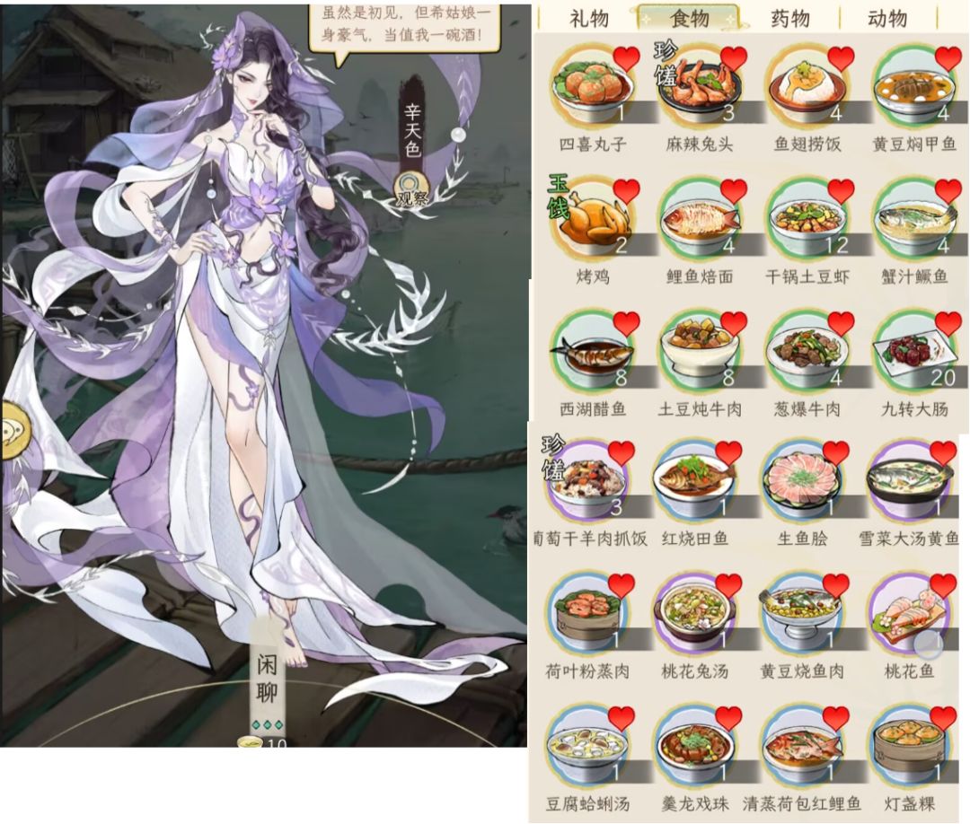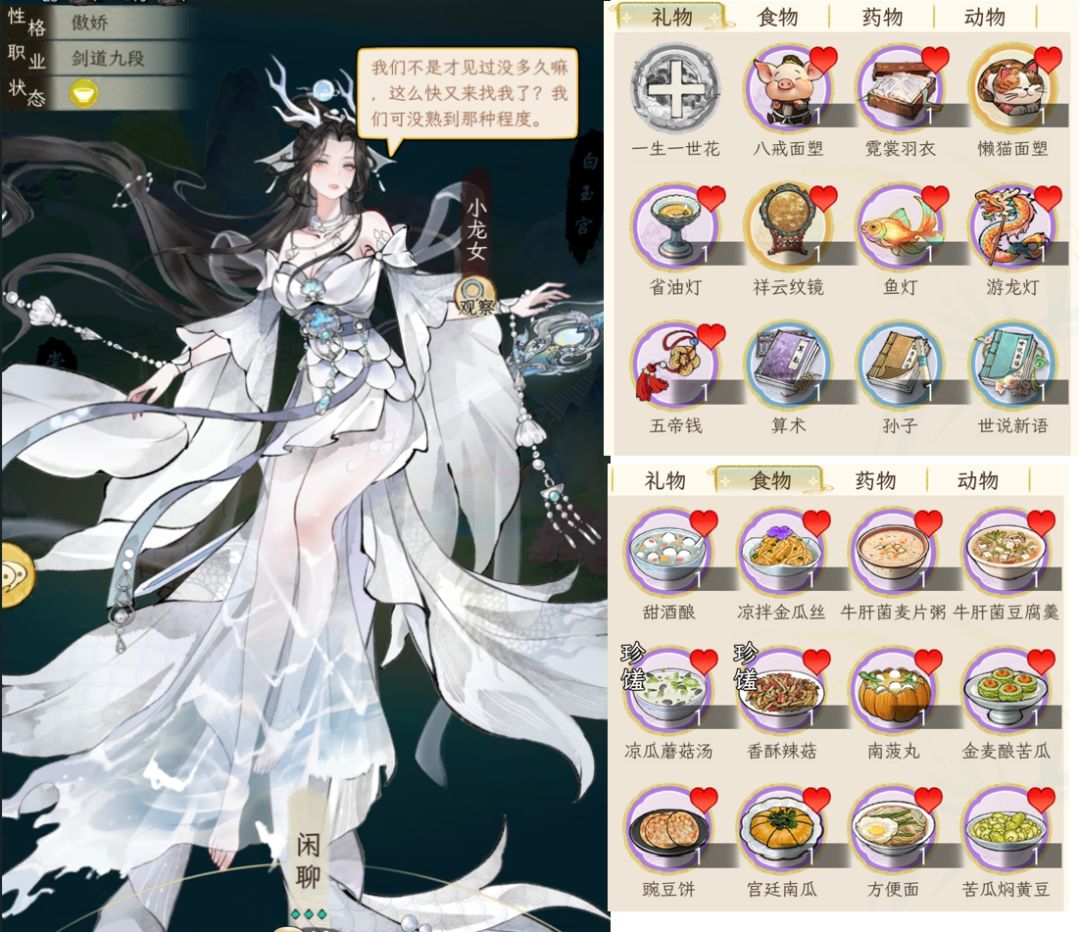 说在前头,考虑到礼品获取的难易度,所以这里用于测试的物品都是可以直接从“商城--市集--赠礼”中买到的,除了这些肯定还有其他,例如团福猫珑、仙肴食物,但是这些获取渠道不稳定,所以不考虑,仅供参考。