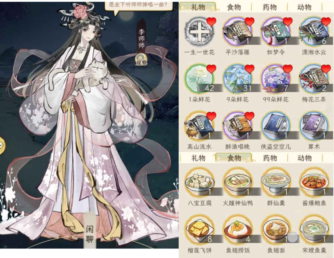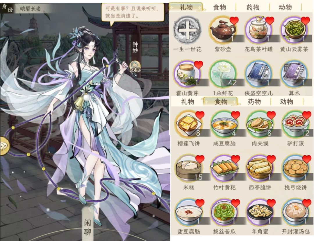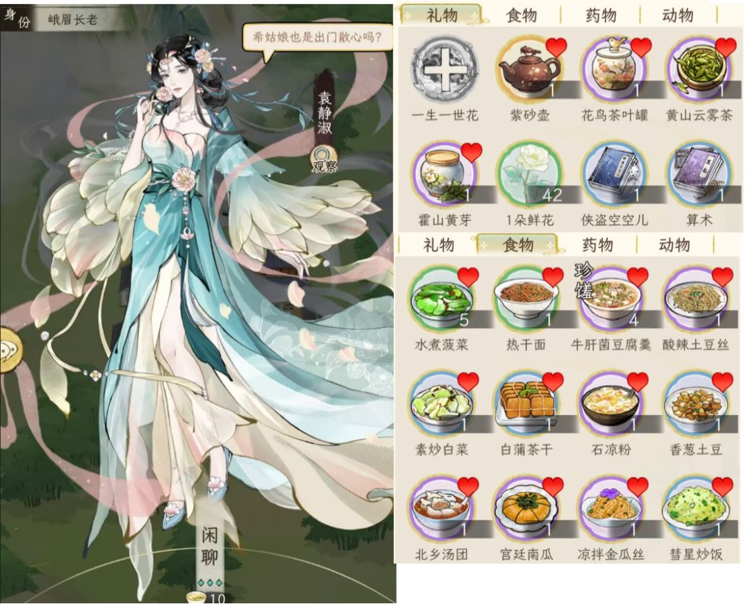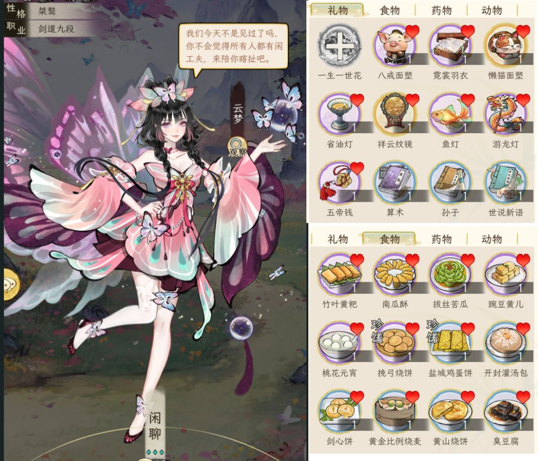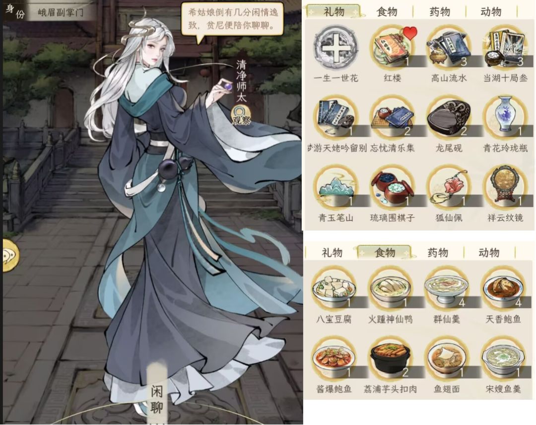 说在前头,考虑到礼品获取的难易度,所以这里用于测试的物品都是可以直接从“商城--市集--赠礼”中买到的,除了这些肯定还有其他,例如团福猫珑、仙肴食物,但是这些获取渠道不稳定,所以不考虑,仅供参考。