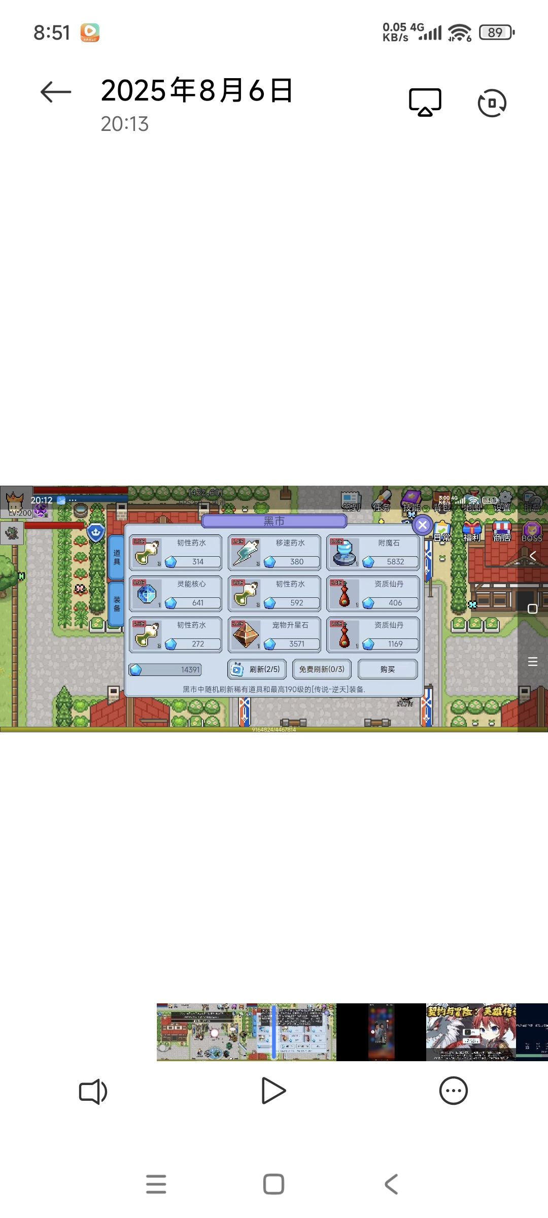 这游戏不用太用力,因为是个序列游戏,所以一切都是安排好的,每天只需要看12个广告,五个宠物药、五次黑商刷新、福利第三页的迷失BOSS卷和熔炼值。