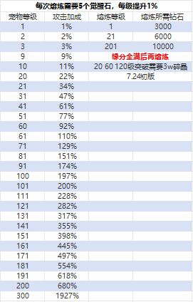 4.宠物目前可以粗略看做每500觉醒石提升2.7倍,5觉醒石1级提升1%,绝大部分情况下提升不如缘分,建议点满缘分后再在此系统上投入觉醒石(7.24初版宠物系统)