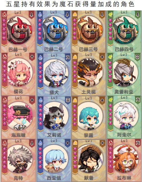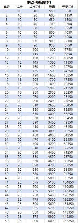分别为装备印记升级所需碎片及元素,近战远程训练,元素训练和六链所需红石,机械精灵进化所需材料及各种精灵突破属性,宠物部分等级的加成及消耗的钻石