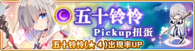在“五十铃怜Pick Up扭蛋”中,★4魔法少女·五十铃怜及★4记忆结晶「和你在这里」的提供比例将会提升。