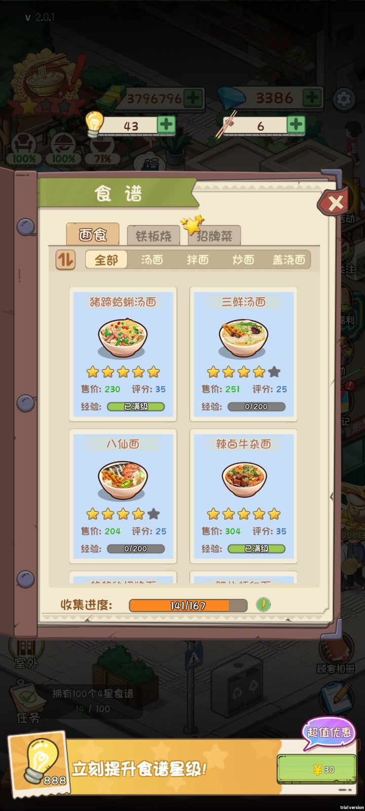职员都开到全才二了,食谱完成度才71%,我还要刷出多少筷子才能过啊