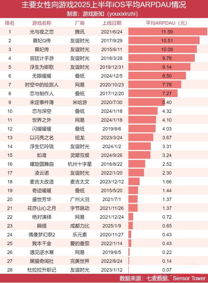 绘旅人是典型的小众乙游,但玩家粘性极高,愿意为喜欢的男主买单!虽然DAU和收入都不高,但ARPDAU常年中上,说明活下去没压力,养得起团队,海螺肉赛高#恋与深空 #时空中的绘旅人 #世界之外 #光与夜之恋 #乙游 #女性向 #以闪亮之名 #闪耀暖暖 #无限暖暖 #未定事件簿 #如鸢 #浮生忆玲珑 #花亦山心之月 #遇见逆水寒 #游戏数据 #游戏流水排行