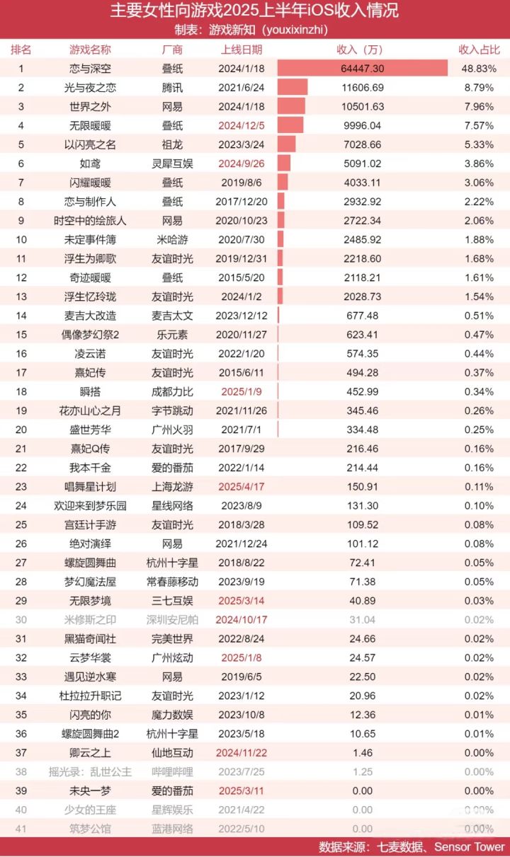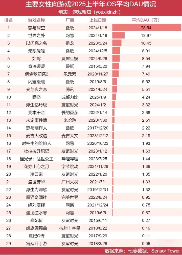 我主要分析比较多人玩的恋与深空、世界之外、光与夜之恋、时空中的绘旅人