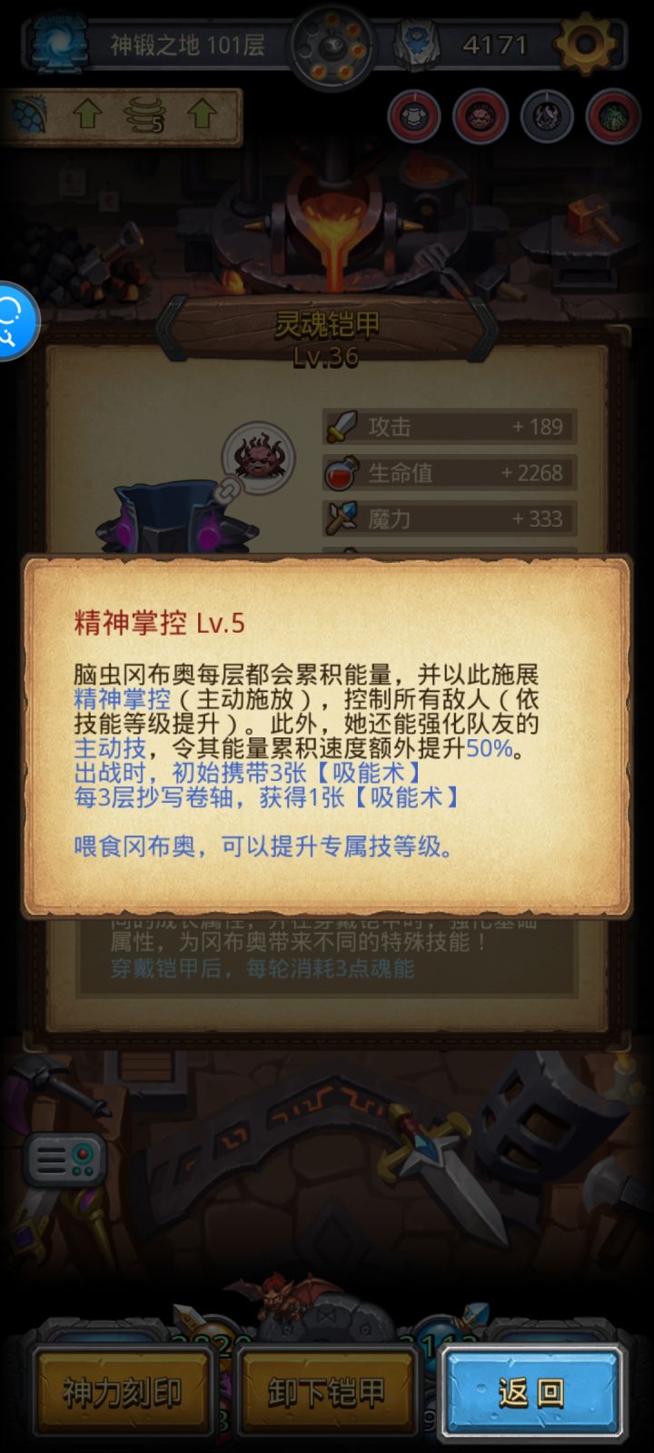 神锻之地675种组合,这次深渊的预言先行者战争巨兽克鲁苏脑虫。深渊恶魔之血+冒险者竖琴/奥德赛+异界黑暗仲裁黑暗祭司小恶魔。预言先行者出战道具可以直接看钥匙。脑虫加成下,战争巨兽2层秒一个,克鲁苏2层控制一个,正好无缝衔接,称号再拿3个内爆砸死80 90 100boss。脑虫比较牛,战争巨兽负值能量从-24变成-36,脑虫什么奇怪的能量都能加,猛禽魔术师点赞,相比之下电池太可怜了,神农不加世界树不加收魂者不加。