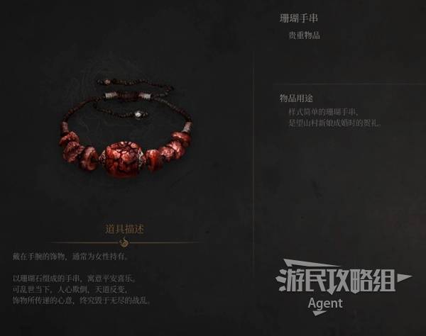 把珊湖手串交给望山村女眷,得到【黯淡红羽】。