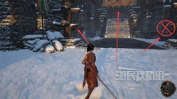 来到雪堡主堡,左边角落有个竹笋。