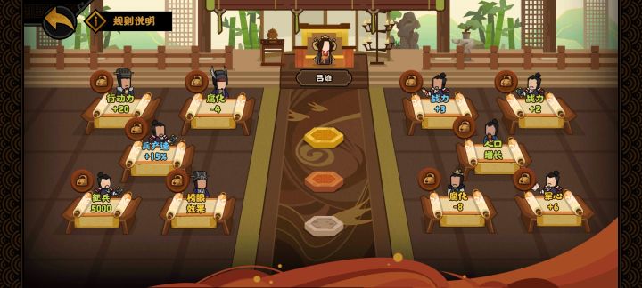 名臣我是带的鲁肃,桓伊,吕雉,顾恺之。然后我是先东征,再北征,再南征,最后再西征的。这剧本玩大一统结局(把除自己以外的所有势力消灭)玩到后期发现最缺的就是行动力,后面发现行动力可以开科举,再把加20行动力的人定为状元,然后就可以一次加100行动力了