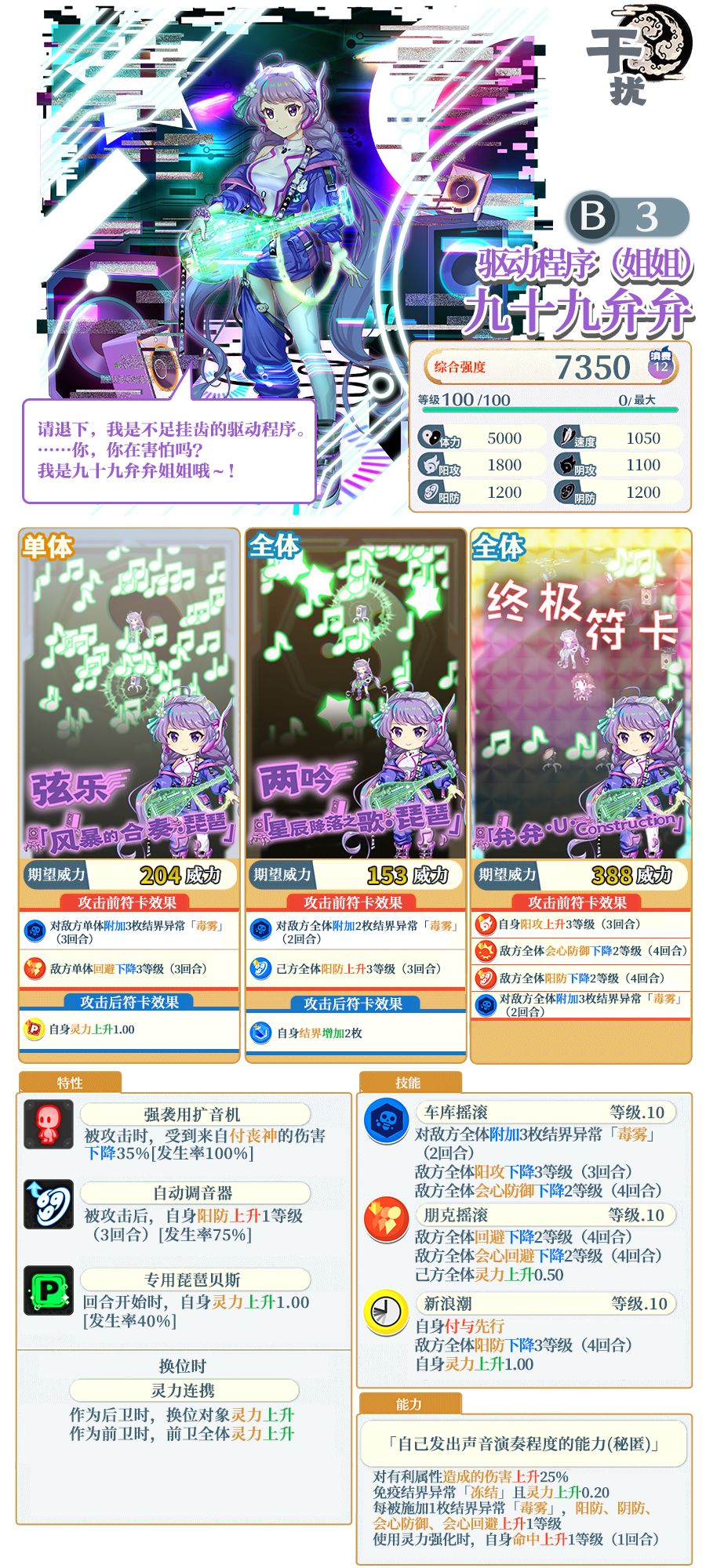 ※「驱动程序(姐姐) 九十九弁弁」需要使用同名伙伴或者「天之替身」进行界限突破。不同泛异记号的伙伴、「天之替身」以外的替身无法对其进行界限突破。