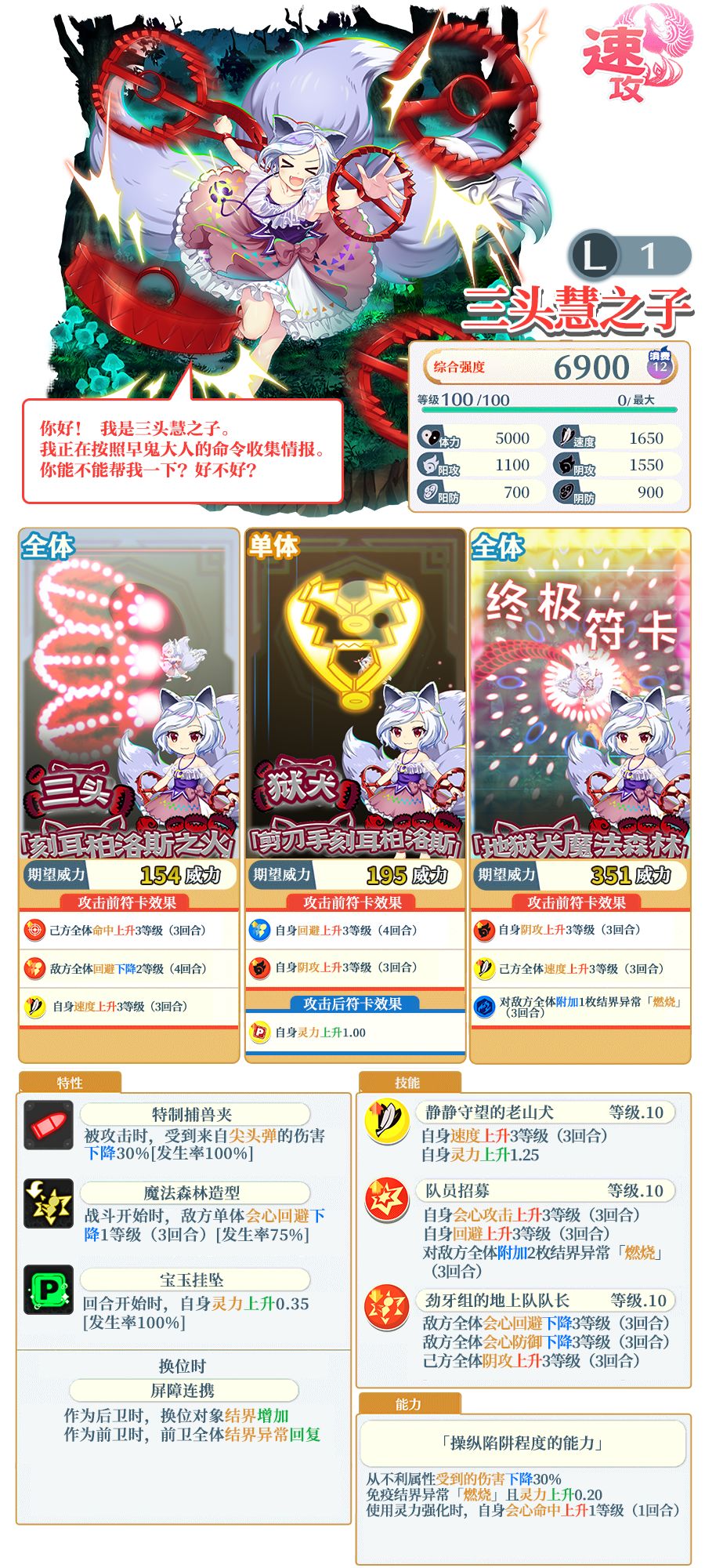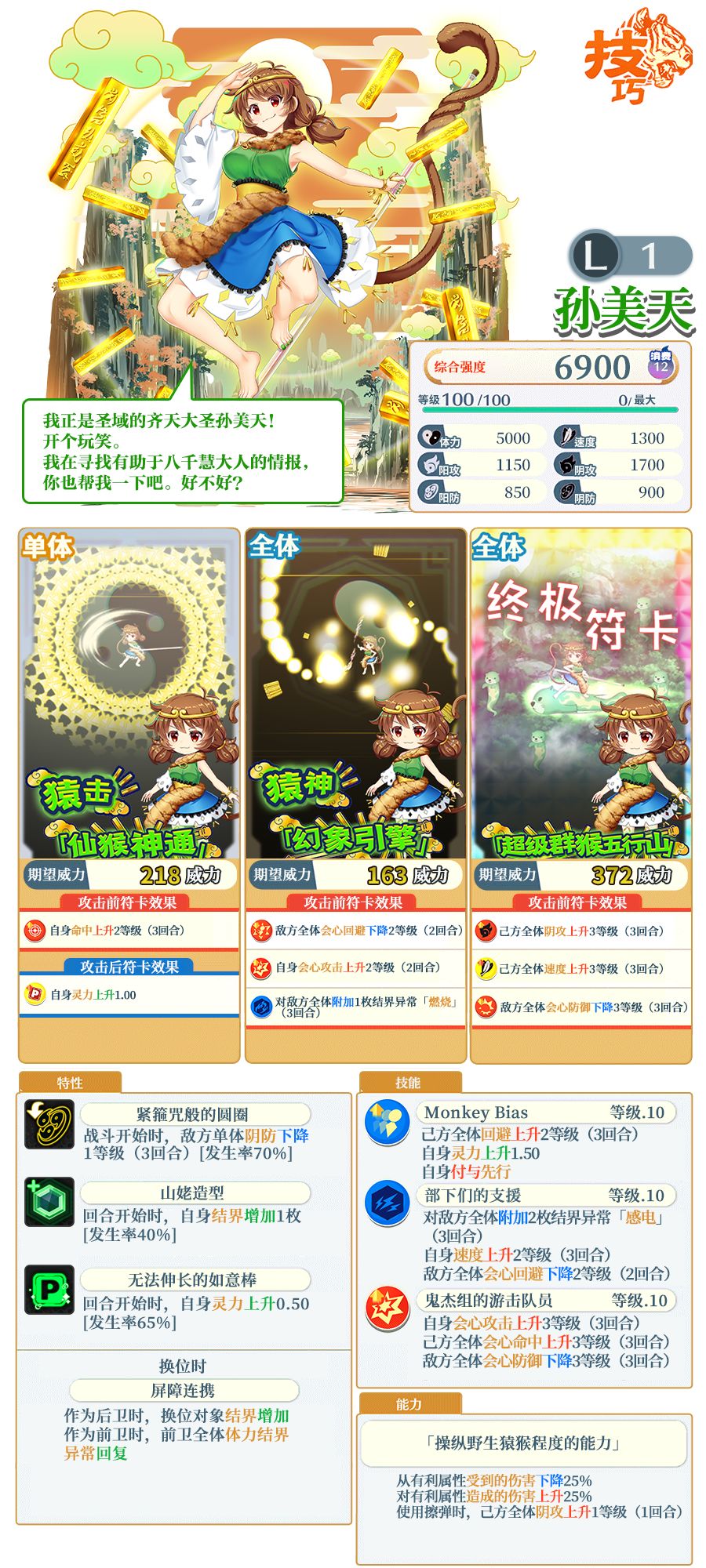 以下为伙伴技能及符卡介绍: