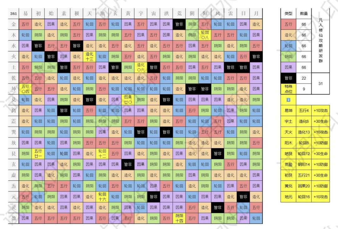 ①推测一:即按五种类棋子分布,比如金木水火土就代表五行棋子。在这一横排和相对应的竖排落五行棋子便是满加成。(★最终结果好像是推测一,还有待验证)
