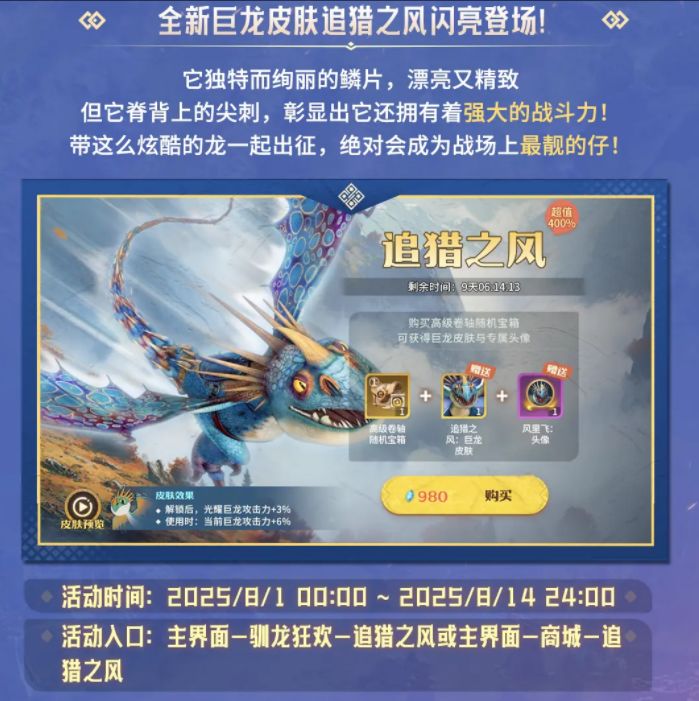 为了让大家的游戏体验更加火热精彩,龙宝宝再给领主们送来一个惊天爆料——《龙石战争》与《驯龙高手》的梦幻联动将在8月1日火爆来袭!
