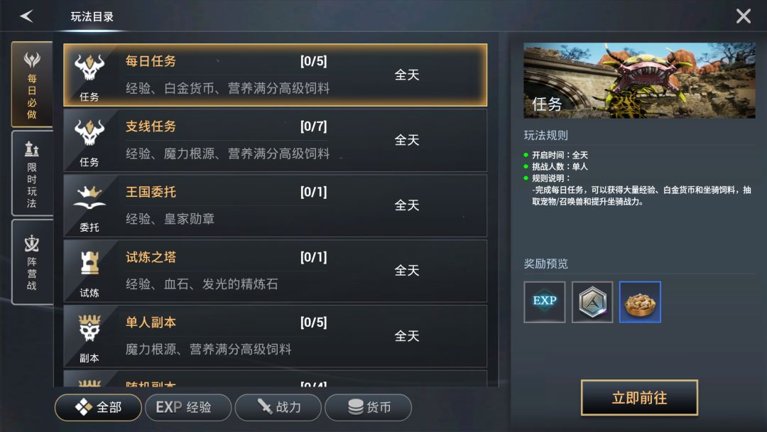 活动期间完成主线、七日任务及每日挑战,即可无门槛领取养成道具,英雄品质坐骑、宠物、召唤兽打包送,[传说级精灵卡·赛里娜] 登录即得,助你轻松满级!