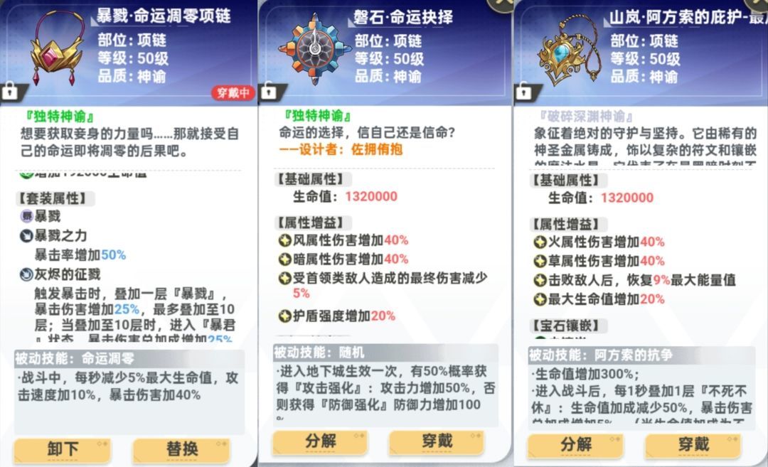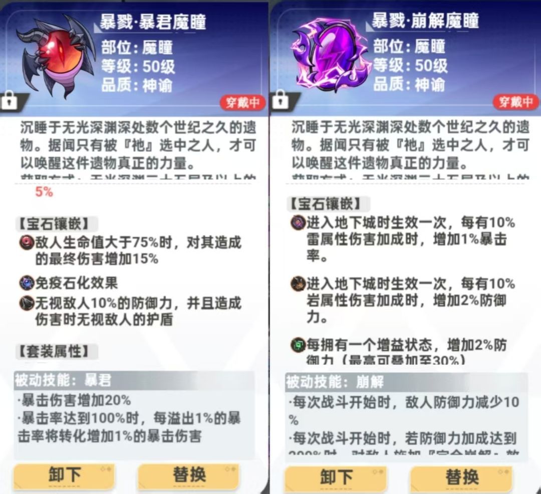 一切优秀的暴击爆伤装备均可更换,主要是各个版本的活动装,哪吒套、大圣套。地下城能获取的就是战神两件套、祝福面纱、鬼面等。