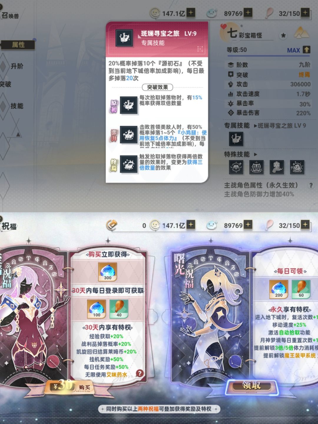 入坑建议开88永久卡-曙光祝福,每日任务+永久卡+七彩宝箱怪是源初石的主要来源。