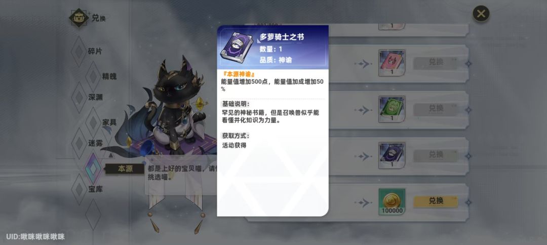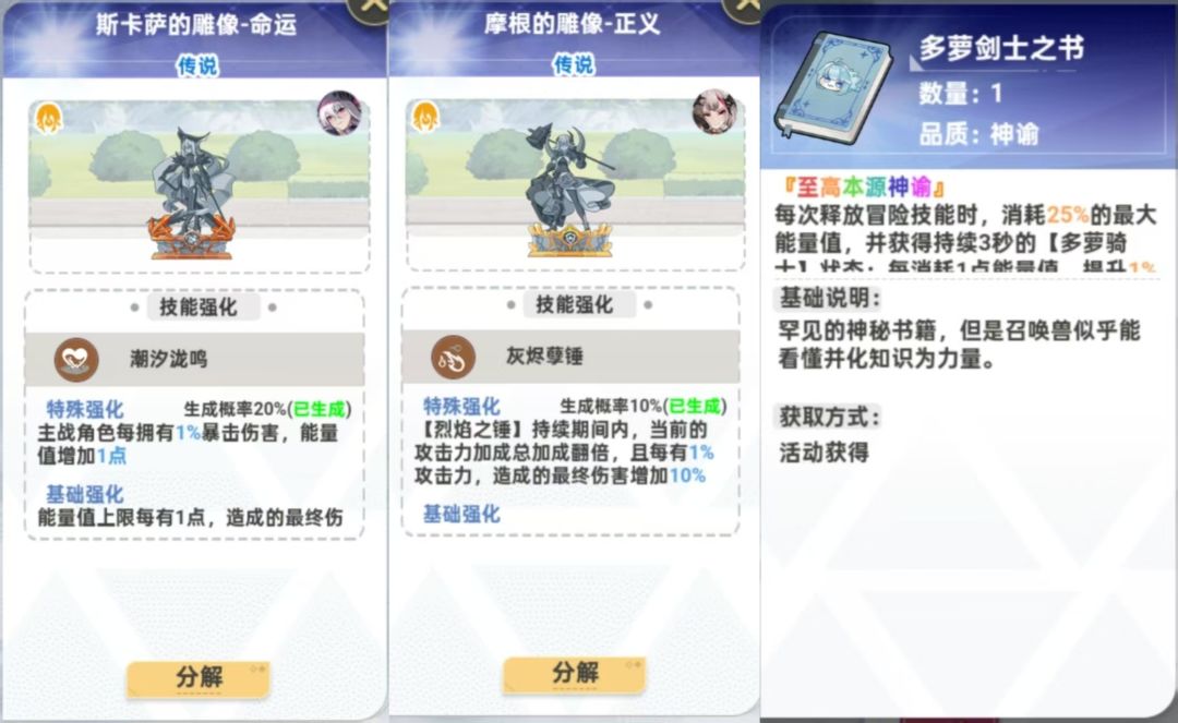 多萝骑士之书是此配队很重要的基础,提供了高额的基础能量,解决了零初始能量低的情况。