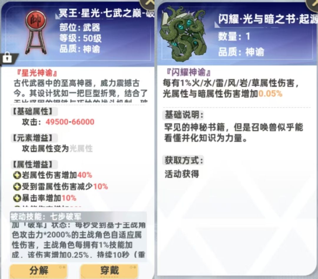 左边是带板凳的,主武器光属性,除禁大外直接秒,秒不掉的也有持续作战能力,时间越长越强,有光暗起源书带克制武器最强。无板凳有书直接火属性主武器,其他一样。