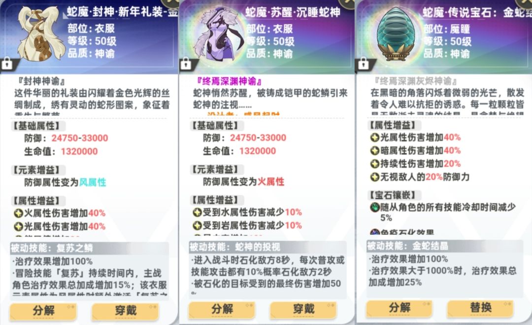 上期的活动装排第一,目前唯一一件直接加暴击的装备,普通的建议流放者之恺(主线都能获取),然后蛇衣开局石化。