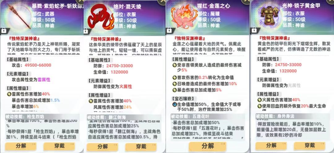 ③哪吒三件套必选,单件属性高,套装效果强。