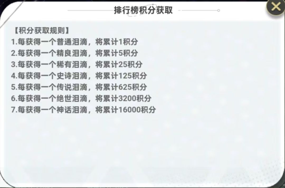 ④节制雕像数值低,目前收益低。泪滴排行这个分数对应的应该就是抗性值,所以一身绝世才可能有直观的提升。
