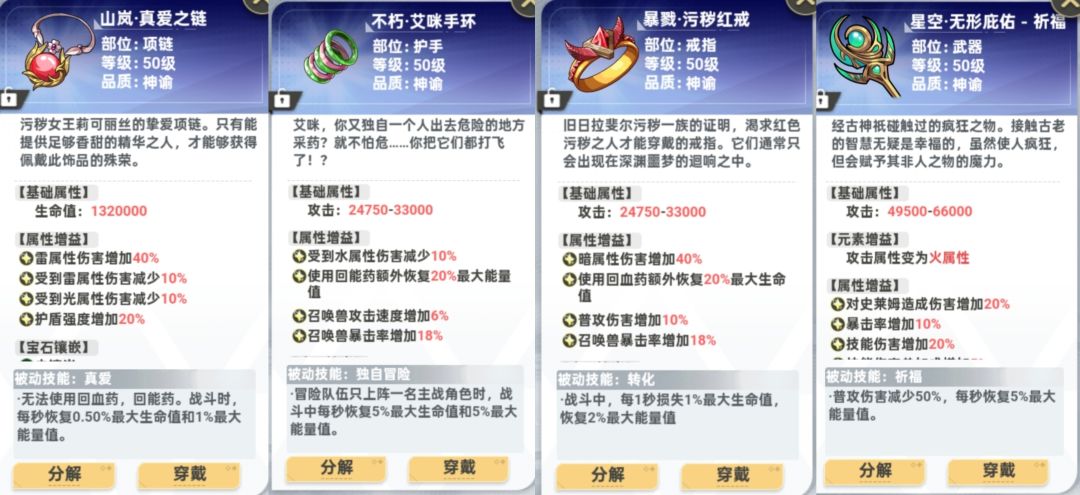 ④宝石带的一套创世等级,魔瞳宝石:穿透、净化、破败、雷神之心、岩神之心、坚守,均是普通品质。