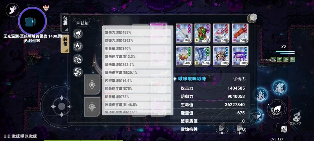 ②摩根用的满誓约,10s内解决战斗,所以满誓约未生效。本体试了打不动最后几层,本体普通装备上限应该能到1394。