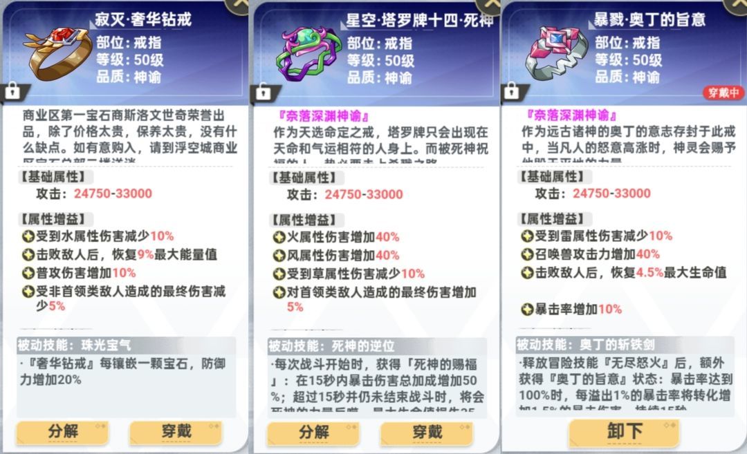 奢华钻戒开局,490后双戒指可一直用。奥丁的旨意暴击流之神。