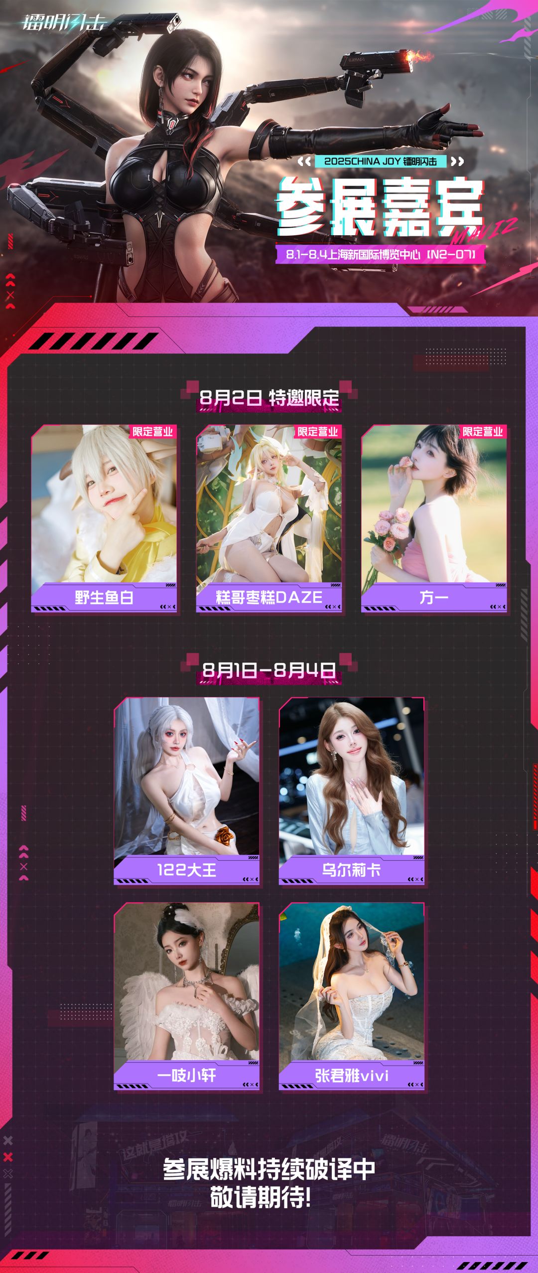 小艾为大家带来了全新的一手情报——2025ChinaJoy 《镭明闪击》Coser阵容已被本天才AI成功破解!—— 全、体、解、禁!