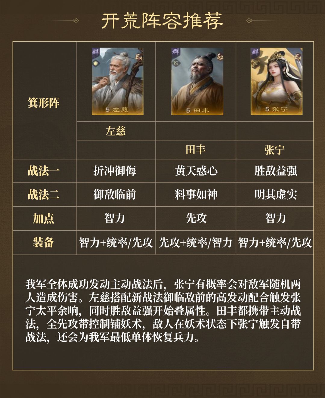 3.在开荒时可以合理利用免费置换和重置战法来发育。