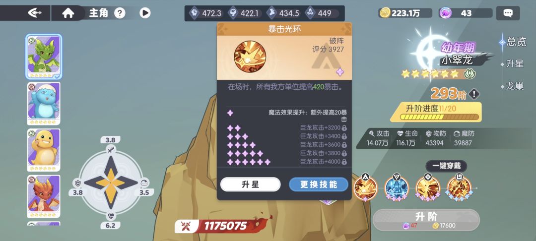 龙语的暴击420不受荆天赋影响,直接对荆加成。荆暴击率就变成55.7+42=97.7%。