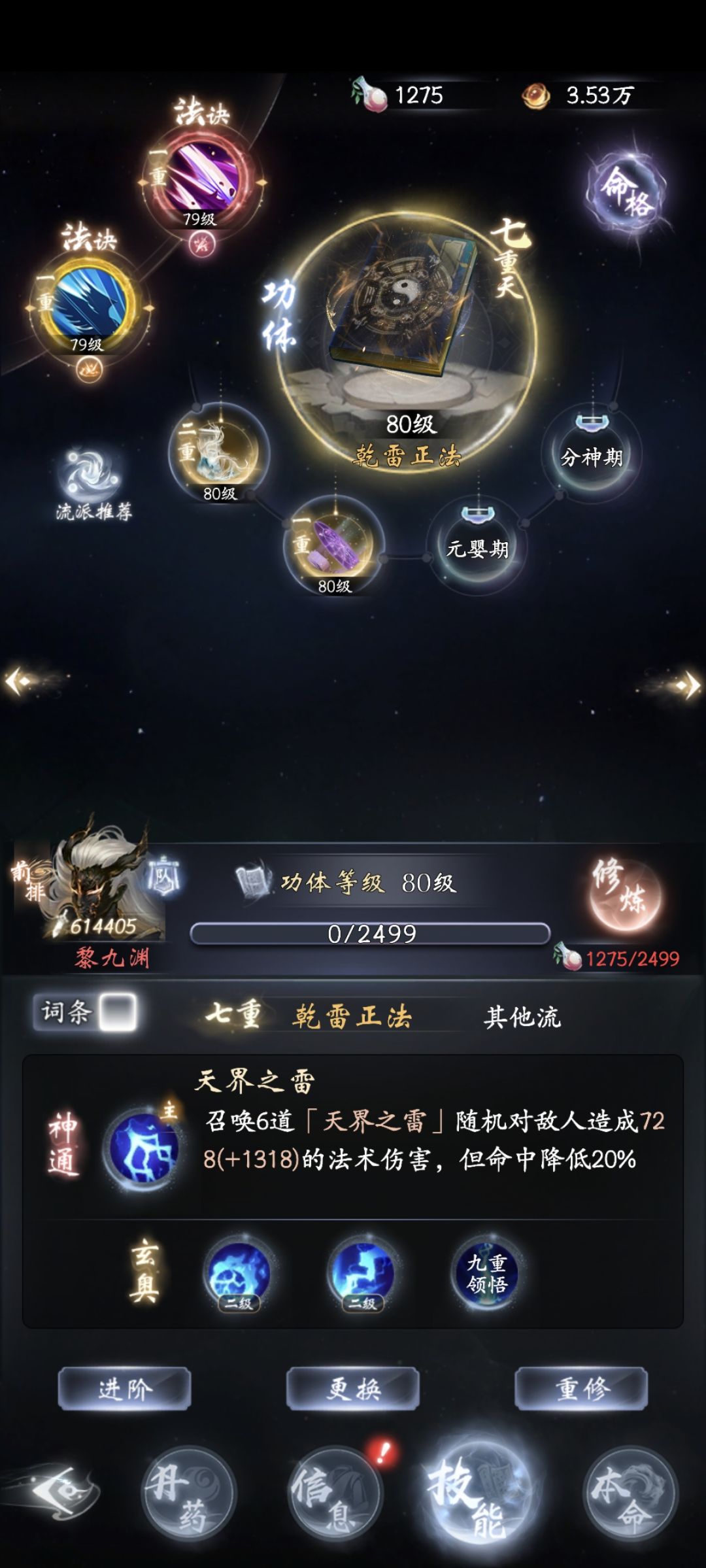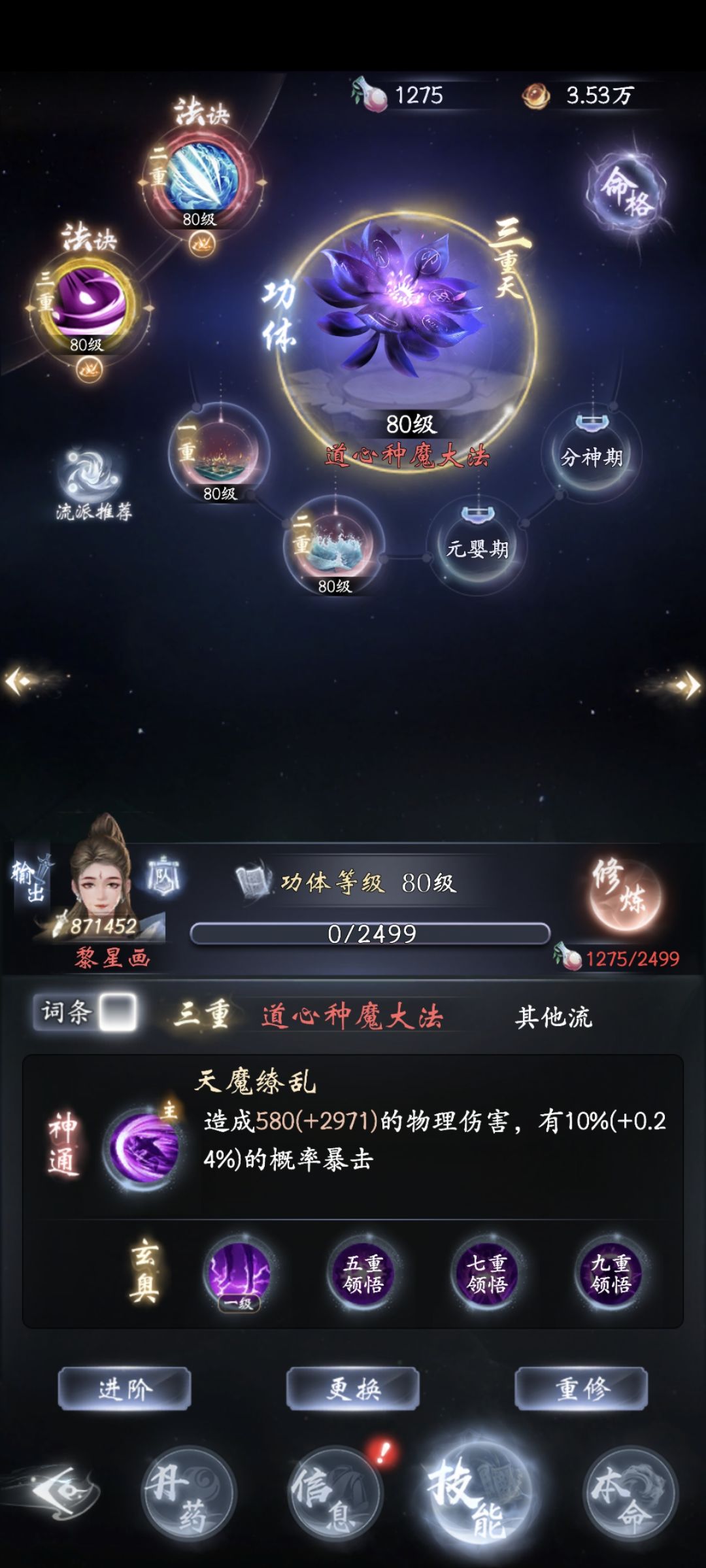 氪金功体首选武道天书,武道天书比起道心种魔伤害差一点,不过比乾雷正法伤害要高。