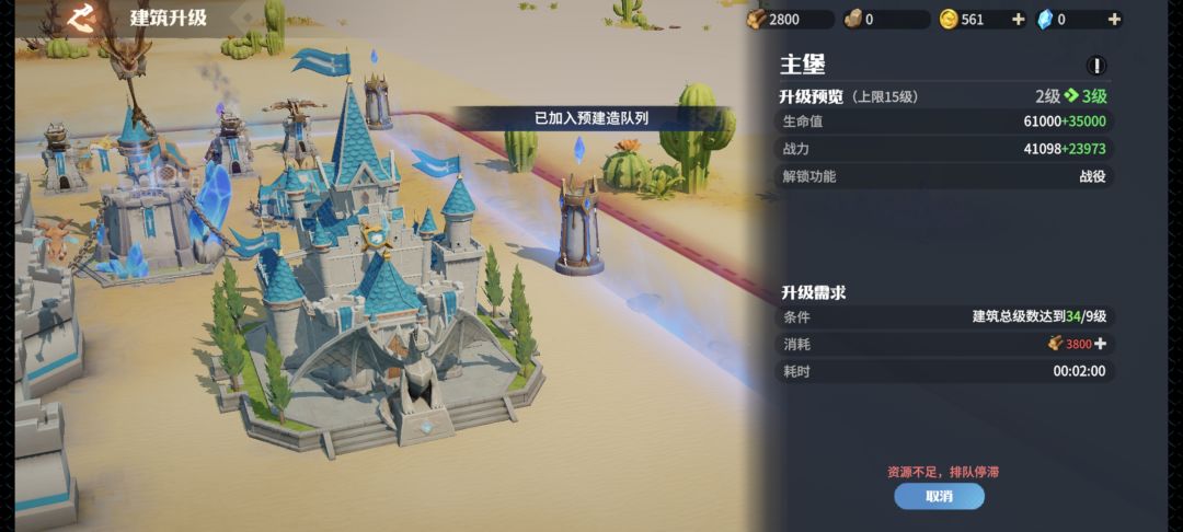 开荒必看!388 龙币先买第二建造队列,比抽卡香一万倍,落后要挨揍!主堡死命升,建筑优先级:旅馆>练兵场>战争学院(英雄、士兵、科技一个都不能少)。
