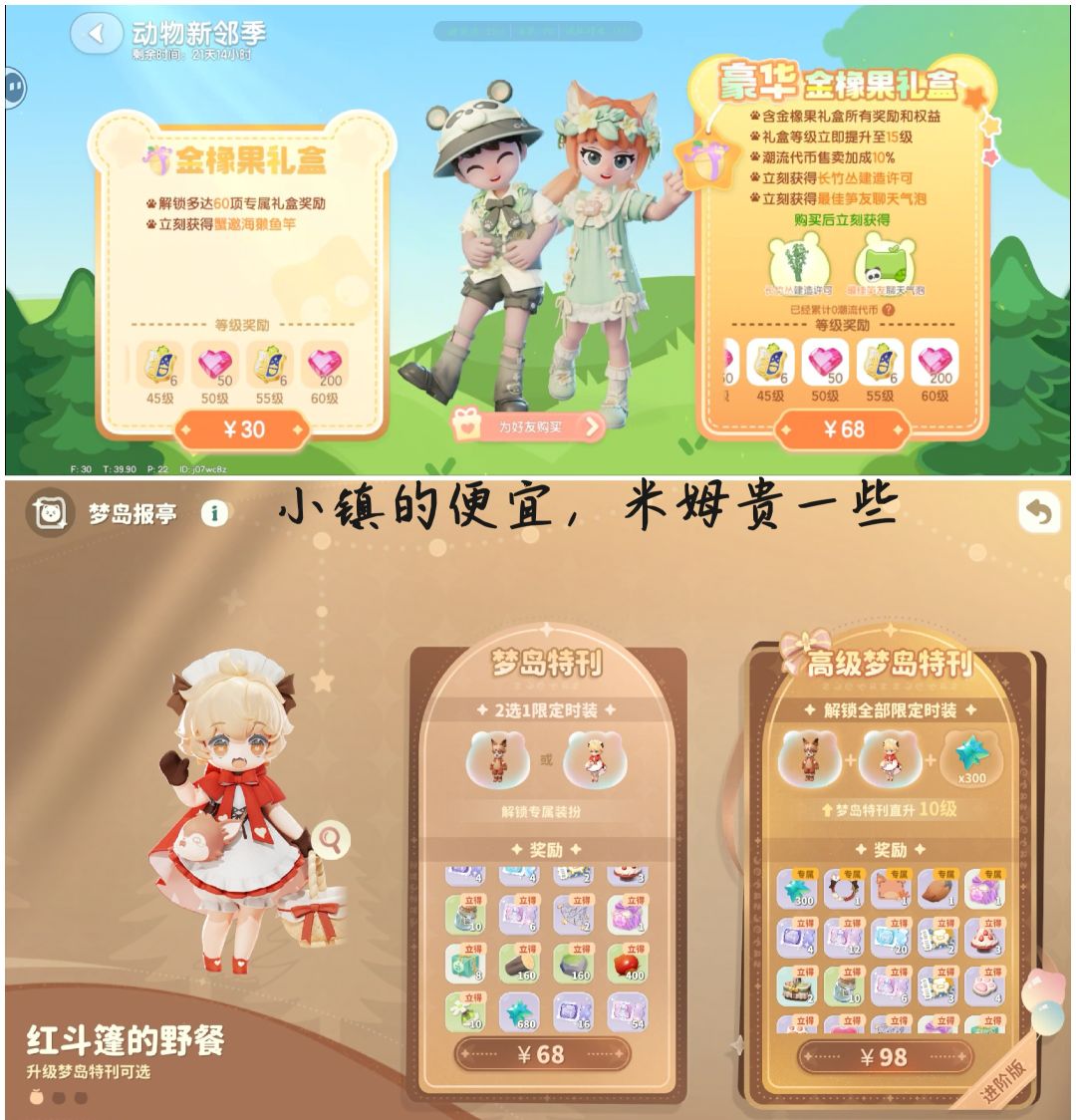 心动小镇与米姆米姆哈氪金对比