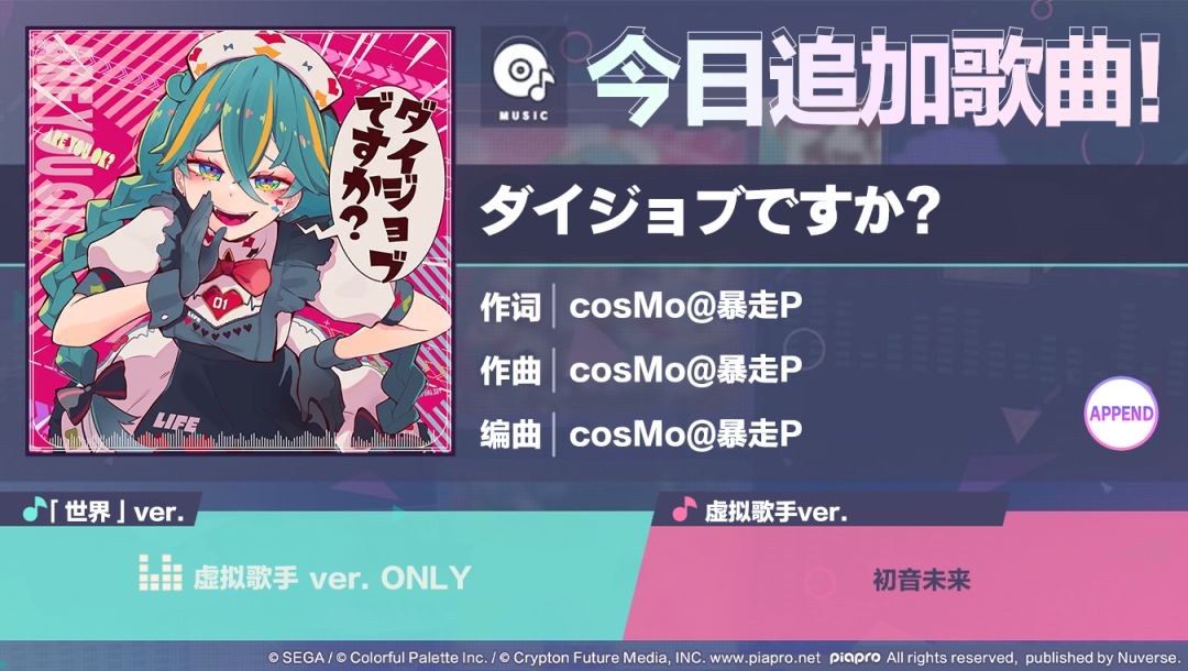 7/29 15:00起,将追加歌曲《ダイジョブですか?》!