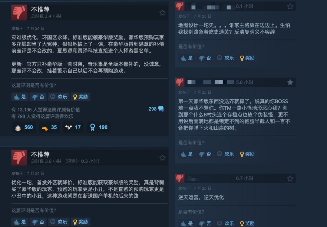尽管《明末》首发取得了不错的销量,但由于游戏优化不及预期、预购奖励发放错误 、外区价格异常等问题,本作在Steam的评价持续走低,截至目前为多半差评。针对出现的问题,官方正积极着手解决上述问题。