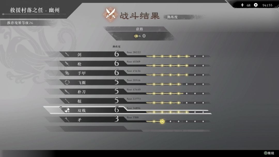 游戏的武器可以性可以说都很高,剑是传统c技武器,长枪简单上手,yyy连招吃遍天,手甲单挑神器 飞圈主要是把控中远距离攻击牵制敌人,需要活用闪避看破,可操作性极高,朴刀伤害高,以y的满蓄攻击为主要玩法,双戟我个人认为的各方面的神器,我个人比较喜欢用的连招就是破防敌人后按住y将敌人击飞然后连按y对敌人进行浮空攻击,可以对敌方进行比较长时间的控制,如下图。