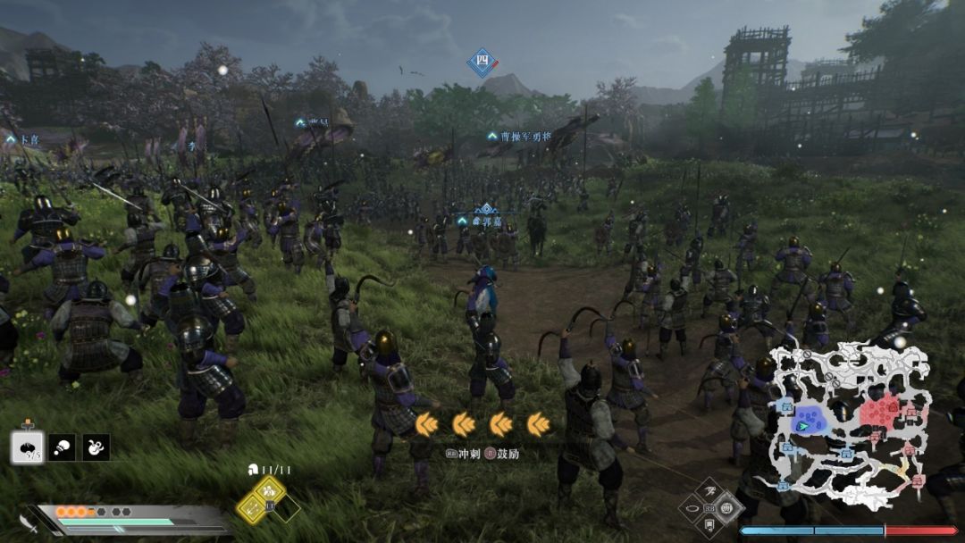 除了战斗系统,游戏另一个我很喜欢的就是战场的氛围感了,由于士气系统的引入让战场氛围更加有代入感,包括多种战术的加入(按住lt键)让我们自身也可以指挥旗下的士兵给我们冲锋陷阵给予后援。特别是进入突袭阵地后冲击敌方本阵的运镜,我可太爱了,把整个大战场氛围完完整整体现出来。包括开城门,烧毁敌方弓箭塔等等战场细节做的都很好。士气系统也做的很好,士气高的一方打士气低的真就是降为打击。