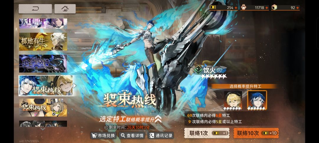 新手30连必出六星角色那个卡池抽了,有时间限制,抽到巫血赚