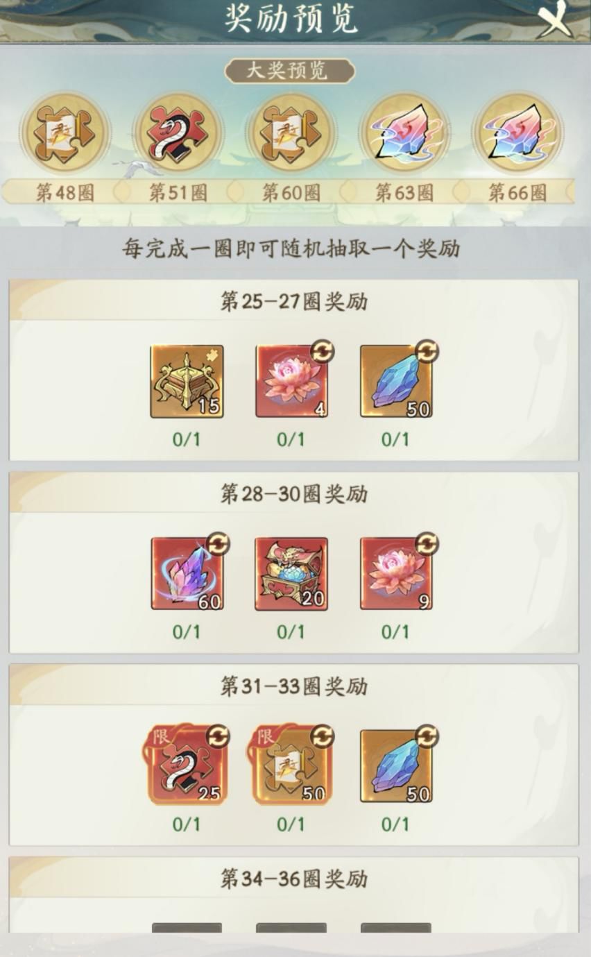 每走完1圈后,可随机获得1个圈层自选奖励,圈数全部完成后,可获得该圈层全部大奖!